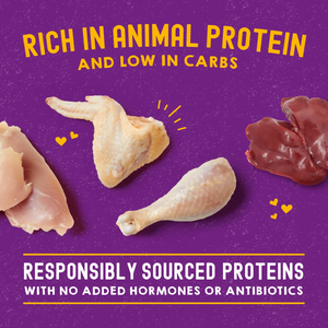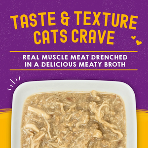 A protein-rich diet that includes real shredded poultry or fish, real nutrition, and real taste to get your cat purring! A perfect complete meal or tasty kibble topper!
