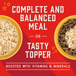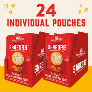 Kickstart your dog’s dinner with Stella’s Shredrs — a delicious and nutritious way to make mealtime special. Packed with protein and nutrition, we combine pure shredded and diced muscle meat with a rich nutritious broth for a healthy way to boost your pup’s bowl! This convenient, tear open pouch is ready-to-use anytime as the perfect food topper or a delectable complete & balanced meal all on its own.