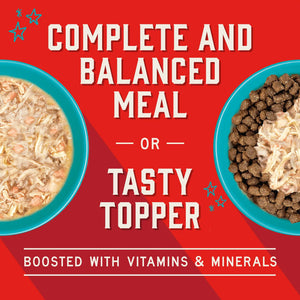 Kickstart your dog’s dinner with Stella’s Shredrs — a delicious and nutritious way to make mealtime special. Packed with protein and nutrition, we combine pure shredded and diced muscle meat with a rich nutritious broth for a healthy way to boost your pup’s bowl! This convenient, tear open pouch is ready-to-use anytime as the perfect food topper or a delectable complete & balanced meal all on its own.