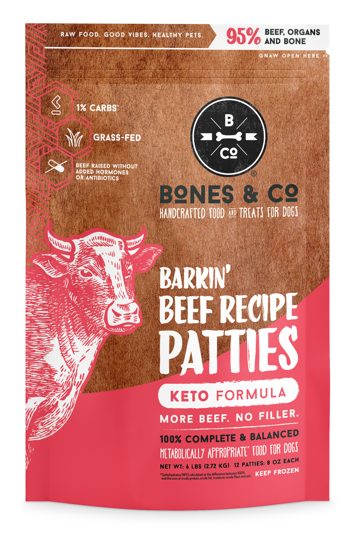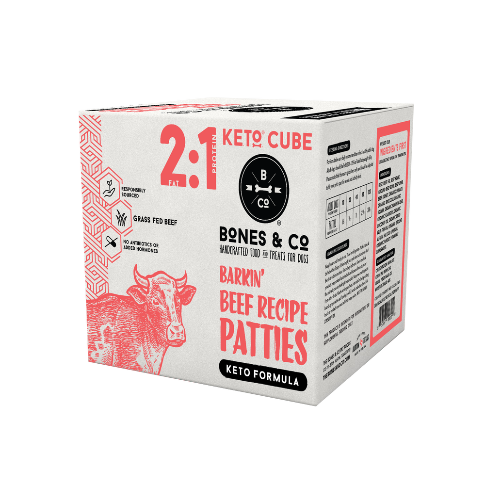 The Bones & Co Frozen Raw 2:1 Keto Cube Barkin' Beef Dog Food