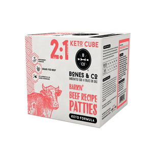 Bones & Co. 2:1 fat to protein ratio therapeutic recipe has even more healthy fats to promote Ketosis, a natural metabolic state in dogs. We doubled the healthy fats in our original 1:1 fat to protein ratio recipe to create our innovative 2:1 (fat:protein) formula for dogs with higher fat needs.
