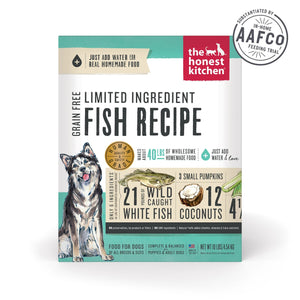 If your sidekick has food sensitivities, then try The Honest Kitchen Limited Ingredient Diet Fish Recipe Grain-Free Dehydrated Dog Food! This recipe is formulated with uncompromising quality control standards using real, recognizable ingredients, like wild-caught fish, that are gently dehydrated to maintain nutrients and taste. And to meet The Honest Kitchen’s 100% human-grade standard, the same whole foods you’d recognize in your own kitchen are used to make this recipe. Plus, this dog food is made in a human food facility for the highest quality and safety standards.
