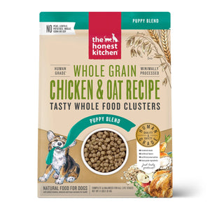 When you care for new puppies, you want to feed them food that will care for them right back. The Honest Kitchen Food Clusters Whole Grain Chicken & Oat Recipe Puppy Blend Dehydrated Dog Food provides added nutrition and flavor to any mealtime. The clusters are made from cage-free chicken that’s been cold-pressed and dehydrated. This honest recipe is free of artificial flavors or preservatives, GMOs, gums, carrageenan, feed-grade ingredients, meat meals or fillers. The Honest Kitchen only offers human-grade food for your precious pooch, meaning the clusters are made from whole foods you’d recognize from your own kitchen.
