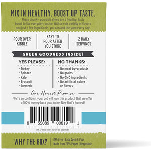 When every day with your dog is special, mealtimes should be too. The Honest Kitchen Bone Broth POUR OVERS Turkey Stew with Veggies Wet Dog Food Topper helps change up your furry friend’s routine with some added flavor and nutrition. Your dog’s tail will start wagging for some cage-free turkey, spinach, kale, broccoli, and turmeric in a savory broth. And you’ll be happy knowing you’re treating your pooch to human-grade ingredients made in a human food facility. With a dish that’s free of artificial flavors or preservatives, GMOs, gums, carrageenan, feed-grade ingredients, meat meals or fillers—everybody say “Bone Appetit!”