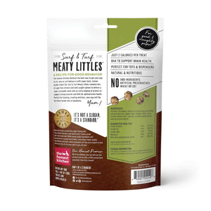 Get your pup to sit, stay or just behave with drool-worthy The Honest Kitchen Surf & Turf Meaty Littles Slow Roasted Chicken & Salmon Recipe Dog Treats. The Honest Kitchen believes good health starts with human-grade, high quality ingredients. Surf & Turf Meaty Littles combine lots of cage-free chicken and wild-caught salmon to deliver a super crave-able taste—with an extra helping of protein to support strong muscles and DHA for optimal brain health. Paw-fect for training, treating and toy stuffing alike—your pup will flip for these tender bits of goodness!
