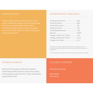 Chicken, turkey, chicken hearts, flaxseed, sweet potato, chicken liver, organic carrots, whole ground krill, whole ground pumpkin seeds, organic blueberries, organic spinach, organic cinnamon, sea salt, dried kelp, dried yeast,