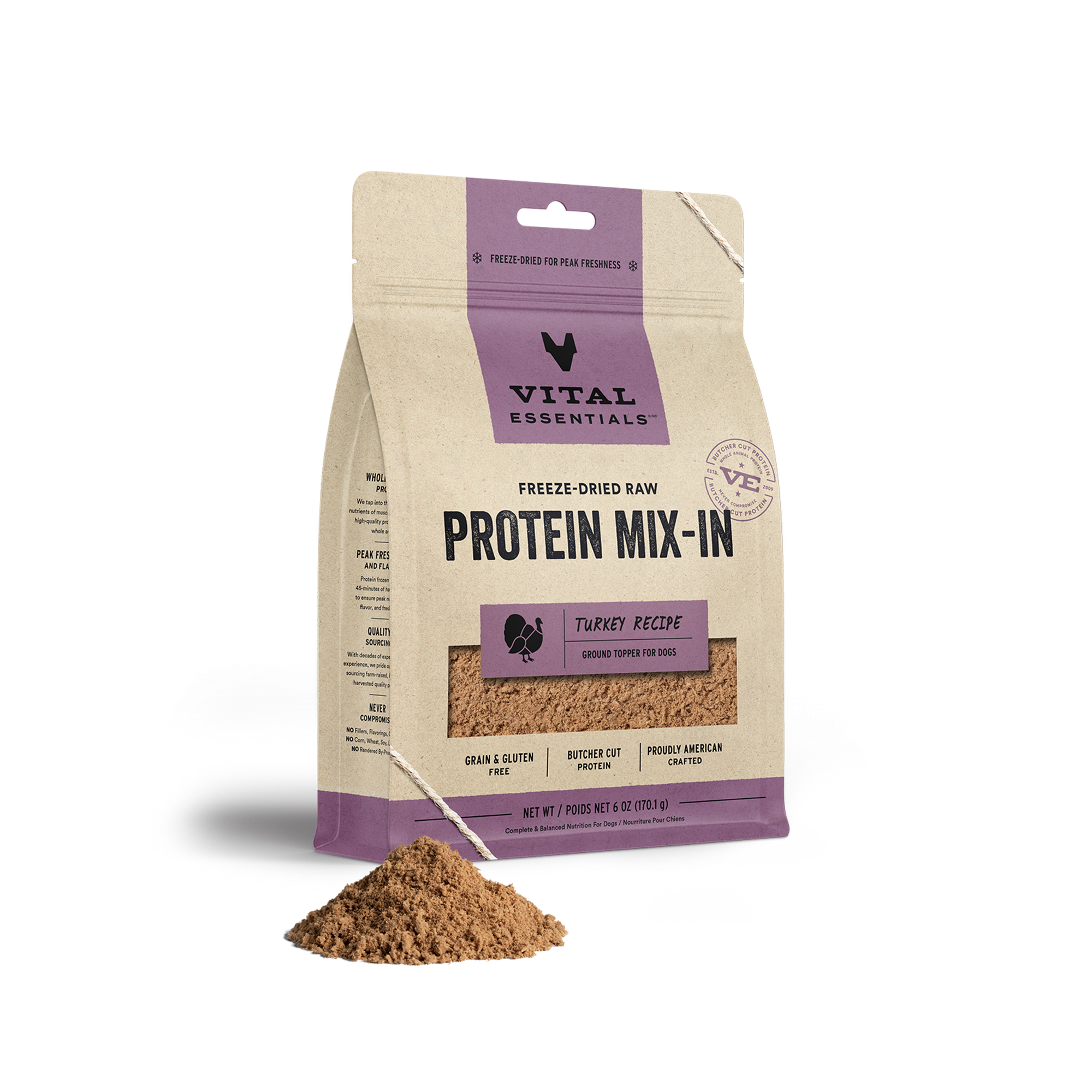 Vital Essentials Freeze-Dried Raw Protein-Mix In Ground Turkey Dog Meal Topper