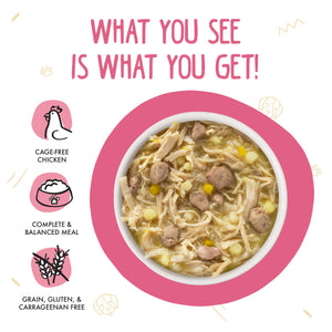 Your dog will enjoy every bite of this boneless, skinless, white breast meat chicken, with chunks of chicken liver and sweet potatoes in a delicious pumpkin gravy. Enough to entice every pallet! The chicken is free of added antibiotics and hormones, and it is also cage free.
