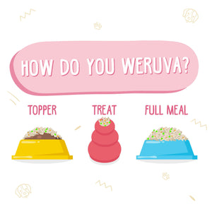 • All of Weruva's dog food formulas are formulated with the carnivore in mind, so this recipe focuses on high quality protein, minimal carbs and a high moisture content for the most nutritious meal around for your pup.