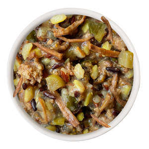 Beef Broth, Beef, Brown Rice, Rice Berry, Red Rice, Kale, Flaxseed, Chia Seed, Sunflower Oil, Fish Oil, Turmeric, Ginger, Potassium Chloride, Green-Lipped Mussel Powder, Zinc Amino Acid Complex, Choline Chloride, Magnesium Sulfate, Vitamin E Supplement, Calcium Pantothenate, Manganese Amino Acid Complex, Niacin, Thiamine Mononitrate, Vitamin A Supplement, Copper Amino Acid Complex, Sodium Selenite, Riboflavin Supplement, Pyridoxine Hydrochloride, Folic Acid, Potassium Iodide, Vitamin D3 Supplement, Vitamin B12 Supplement.