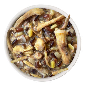 Chicken, Chicken Broth, Brown Rice, Rice Berry, Red Rice, Flaxseed, Chia Seed, Fish Oil, Calcium Lactate, Turmeric, Ginger, Tricalcium Phosphate, Potassium Chloride, Zinc Amino Acid Complex, Green-Lipped Mussel Powder, Choline Chloride, Magnesium Sulfate, Vitamin E Supplement, Calcium Pantothenate, Iron Amino Acid Complex, Manganese Amino Acid Complex, Thiamine Mononitrate, Niacin, Vitamin A Supplement, Copper Amino Acid Complex, Sodium Selenite, Riboflavin Supplement, Pyridoxine Hydrochloride, Folic Acid, Potassium Iodide, Vitamin D3 Supplement, Vitamin B12 Supplement.