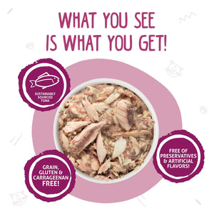 Grain-free wet food is made with tuna and tilapia as the top ingredients so it’s high in protein sourced from real meat.