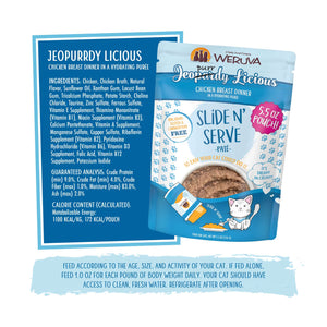 Do pate the right way with Weruva Slide N’ Serve Jeopurrdy Licious Chicken Dinner Pate. Each recyclable pouch holds a complete and balanced meal of pate made with real chicken and savory chicken broth as the top ingredients. Plus, every pet parent will enjoy Weruva’s convenient Slide N’ Serve packaging—simply open the pouch, slide the food out and prepare to your cat’s purr-eference. Best of all, every Slide N’ Serve recipe is grain-free, gluten-free and carrageenan-free, so you can feed your cat with complete confidence. Winner, winner chicken dinner!