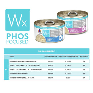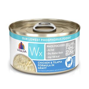 Give your kitty the nutrition she needs with Weruva Wx Phos Focused Chicken & Tilapia Formula in Gravy Grain-Free Wet Cat Food! This all-natural formula is purr-pared without any fillers, carbohydrates, or powdered cellulose. It features low levels of phosphorus as well as bioavailable proteins for optimal digestion and amino acid absorption, which helps maintain muscle mass. It also features a savory gravy to increase hydration. Even the most finicky feline will me-wow at the so-fish-ticated taste, and you can rest easy knowing you’re giving her a fur-esh, high-quality meal!