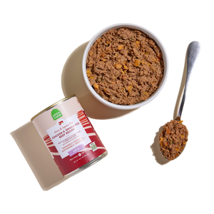 This complete and balanced pâté recipe features G.A.P. certified, humanely raised chicken and grass-fed beef. In addition, chicken liver and non-GMO vegetables such as sweet potatoes, carrots and spinach are added to provide a highly nutritious, delicious meal your pup will crave.