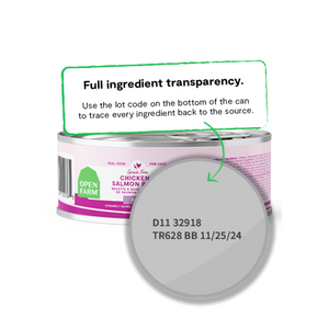 Because of their ingredient sourcing, transparency, and testing, Open Farm has a wide variety of healthy, trustworthy products that we love. Open Farm uses 100% animal welfare certified meats from grass-fed, pasture raised animals, with no growth hormones or antibiotics, ever. They use 100% Wild-caught, sustainably sourced fish as well as Non-GMO fruits and vegetables. If farming or fishery partners can’t pass regular audits to ensure optimal practices, Open Farm does not work with them. Learn more about Open Farm's sourcing practices here.