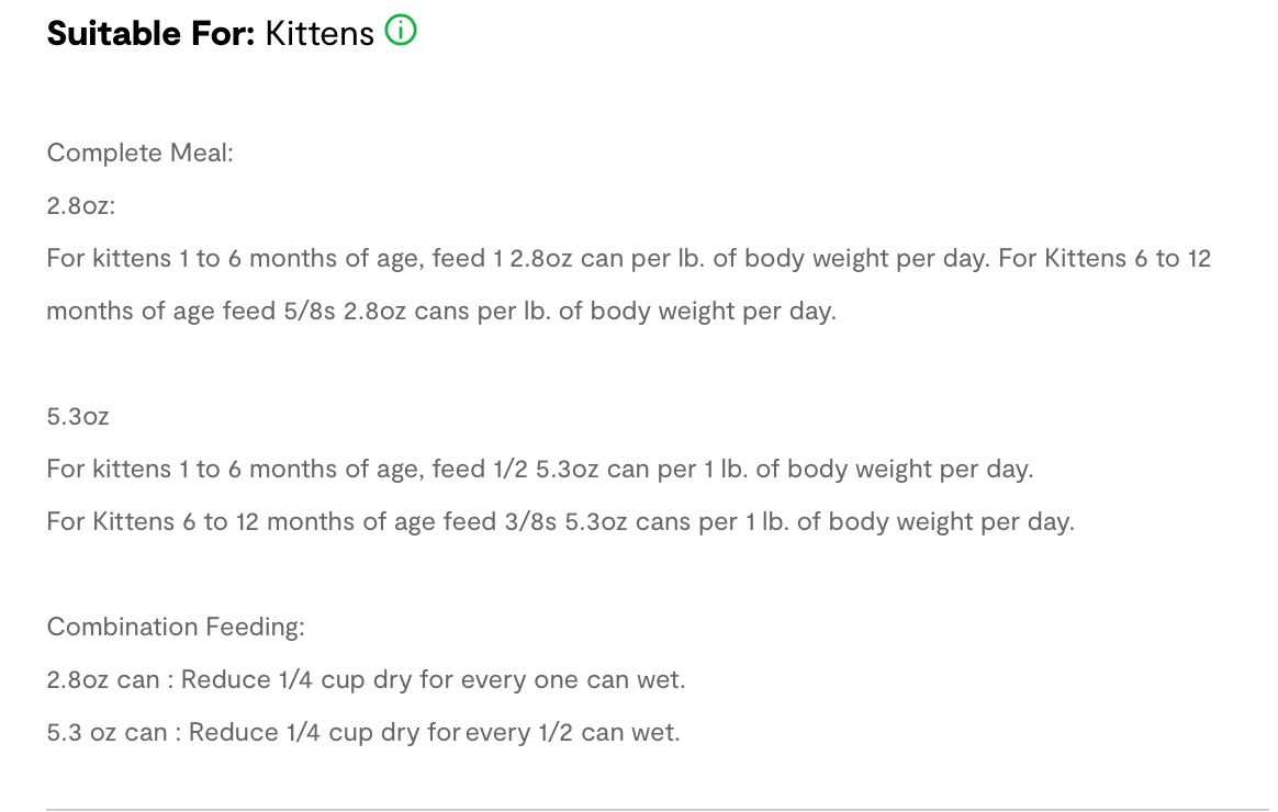 1,290 kcal/kg or 102 kcal/2.8 oz can, 194 kcal/5.3 oz can
